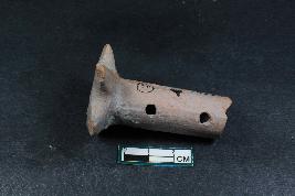 | Description / विवरण | A fragment of unidentified hollow object having spoked base, pinholes on surface and rough surface. |