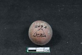 | Description / विवरण | A sling ball treated with red slip and partially part of ball covered with clay. |