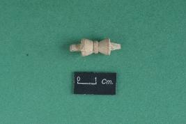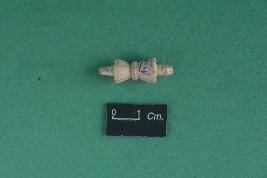 | Description / विवरण | This is a small Damaru shape ivory object with an points at both ends, triangular upward shape and having a banded design in the center of the object. |