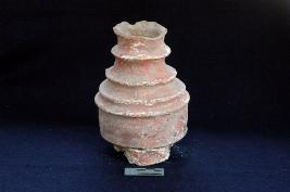 | Description / विवरण | he finials have circular flattened base and tapering neck, decorated with four successively diminishing sharpened flanges and ribs. The inner hollow portion of the finial is filled with fine lime mortar. They have a circular perforation at the top. The top of the finials are broken and it measured a diameter of 6.00cms. The diameter of the base of the finial is 10.50cms. |