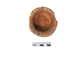 | Description / विवरण | Red ware lamp round in shape without any wick portion. |