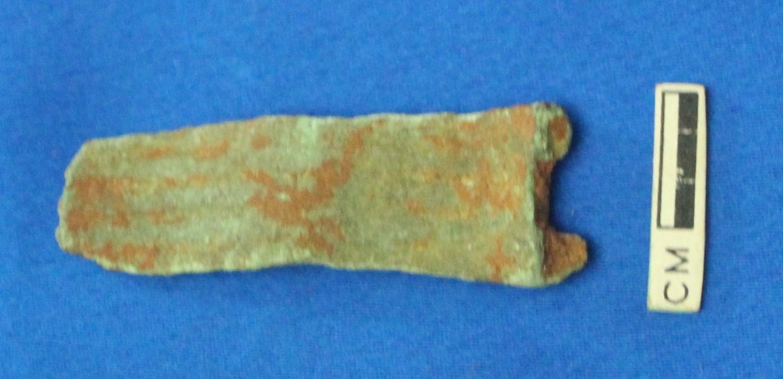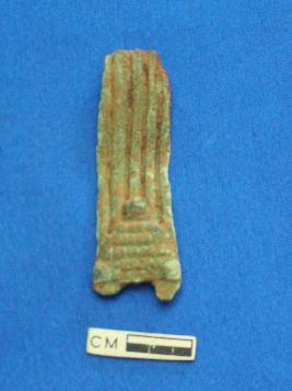 Broken part of decorative object of indeterminate use. The outer surface is decorated with incised lines and tringle designs.