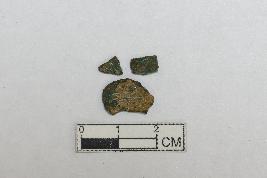 | Description / विवरण | These are fragments of a copper object. There are three irregular pieces. They are completely patinated. |