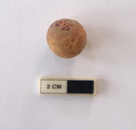 | Description / विवरण | A sling ball in a spherical shape. It is red in color |