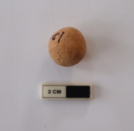 | Description / विवरण | A sling ball in a spherical shape. It is red in color |