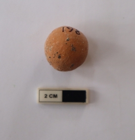 | Description / विवरण | A sling ball in a spherical shape. It is red in color |