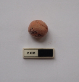 | Description / विवरण | A sling ball in a spherical shape. It is red in color |
