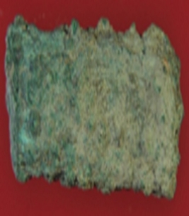 | Description / विवरण | Trench YM 1, layer 1 It s a piece of copper. Edges are broken. Surface is rough and deposition of hard patina. |