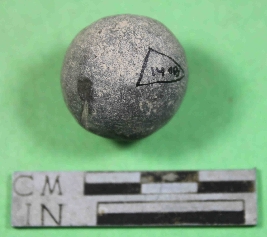 | Description / विवरण | It s a broken terracotta sling ball with round in shape and smooth surface. Its colour is dark grey. |