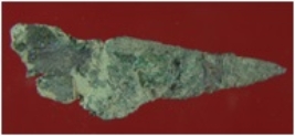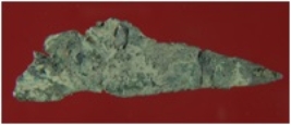 | Description / विवरण | Trench XA 2, Qdt 1, layer 11, depth 205-215 cm It is a thin copper piece with a sharp tip. Hard patina is present on it. |