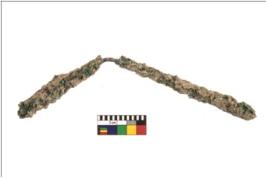| Description / विवरण | A partially broken specimen of a L-bended, cylindrical shaped copper rod which is partially broken from one end. It is highly corroded and fragile. It is probably used as antimony-rod . |