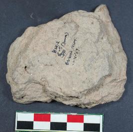 | Description / विवरण | Part of a cake with graffiti consists of incised design, having rough surface. It is Red in colour. |