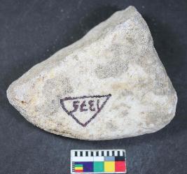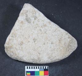 | Description / विवरण | Unidentify stone object having tringular like shape. Its surface is rough and colour is off white. |
