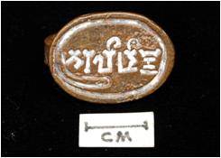 | Description / विवरण | This is an intact copper seal with a curved handle on its back. It is oval in shape. Legend is inscribed on it. |