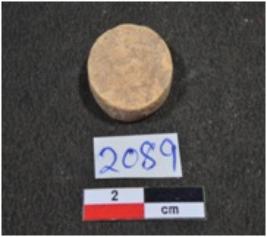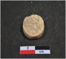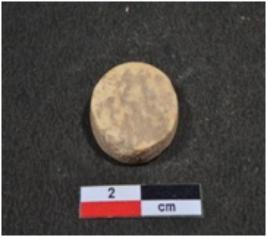 | Description / विवरण | A small sized inlay piece of shell showing disc shaped, circular in section, having rough surface. |