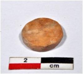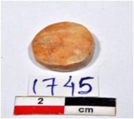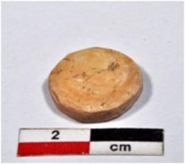 | Description / विवरण | A small sized inlay piece of shell showing disc shaped, circular in section, having rough surface. |
