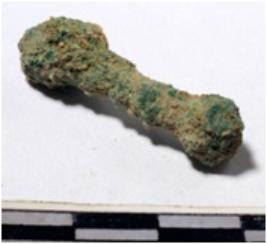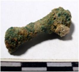 | Description / विवरण | A fragment of a copper unidentified object circular in section of rough surface. |