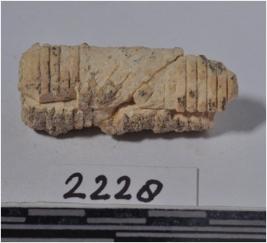 | Description / विवरण | A fragment of a bone decorated unidentified object circular in section of rough surface. |