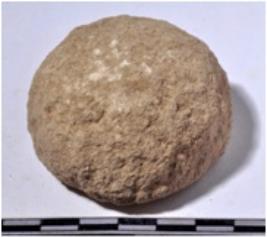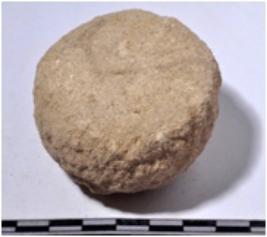 | Description / विवरण | A fragment of a stone sling ball, circular in section of rough surface. |
