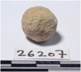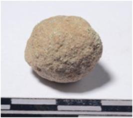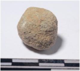 | Description / विवरण | A small stone sling ball round in shape of rough surface. |