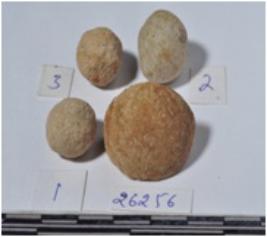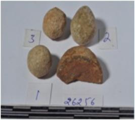 | Description / विवरण | A fragment of a stone sling ball, circular in section of rough surface. |