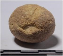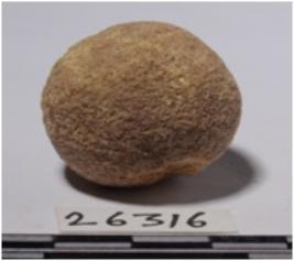 | Description / विवरण | A stone sling ball round in shape of rough surface. |