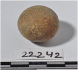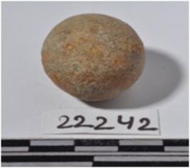 | Description / विवरण | A stone sling ball round in shape of smooth surface. |