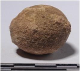| Description / विवरण | A stone sling ball round in shape of rough surface. |