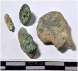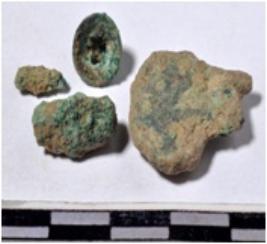 | Description / विवरण | Fragments of unidentified copper object, uneven shaped of rough surface. |