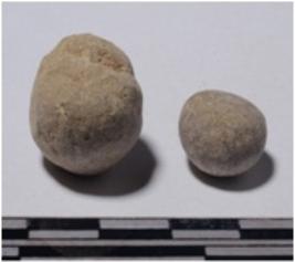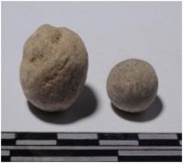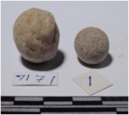 | Description / विवरण | A stone sling ball round in shape of rough surface. |