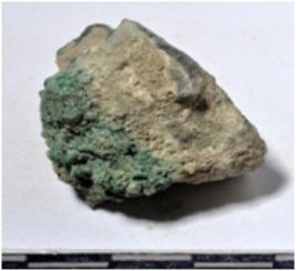 | Description / विवरण | A fragment of a copper unidentified object uneven in shape of rough surface. |