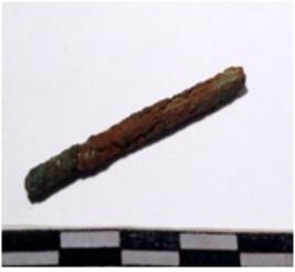 | Description / विवरण | A fragment of a copper rod, broken both end, circular in section of rough surface. |