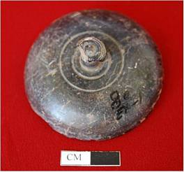 | Description / विवरण | This lid with a knob on the top is black in colour. Around the knob there are two circles. Inside, line marks and visible. |