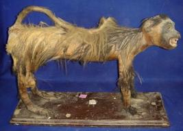 | Description / विवरण | Specimen of African monkey standing on its legs on a rectangular platform. It is preserved with taxidermy technique. |