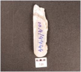 | Description / विवरण | Fragment of a modified mica object, rectangular in shape and section. |