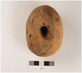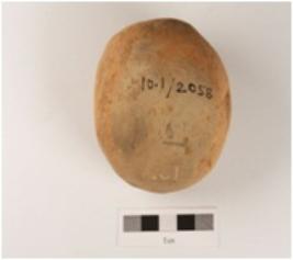 | Description / विवरण | Circular, handmade musstika, incised fingure impression on surface, treated with buff wash. |