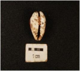 | Description / विवरण | Cowrie shell with a bulbus top and a naturally grooved bottom, powdery surface. |