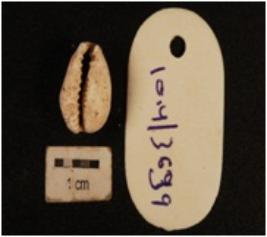 | Description / विवरण | Cowrie, natural marine shell object with powdery surface and natural groove line at bottom and white in colour. |