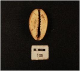 | Description / विवरण | A cowrie shell with bulbous top and natural groove at the base and off white in colour. |