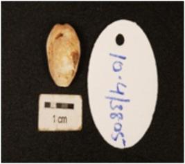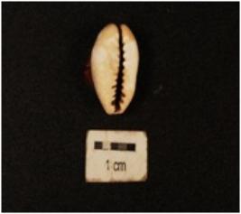 | Description / विवरण | A cowrie shell with bulbous top and natural groove at the base, powdary surface and off white in colour. |