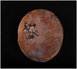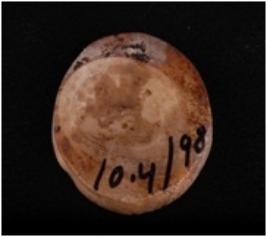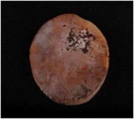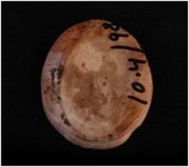 | Description / विवरण | A shell disc with natural depression and worm holes. |
