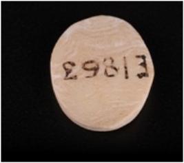 | Description / विवरण | A shell disc with polished surface and natural depression. |
