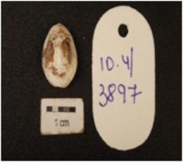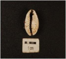 | Description / विवरण | A cowrie shell natural marine object with natural groove, powdered surface, white in colour. |