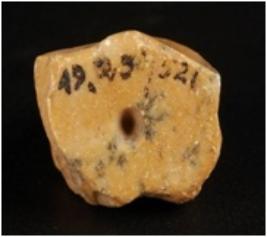| Description / विवरण | A unidentified sandstone object with a hole at bottom. |