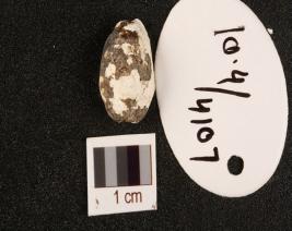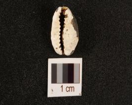 | Description / विवरण | A cowrie shell, a natural marine object with natural groove, powdery surface, white in colour. |