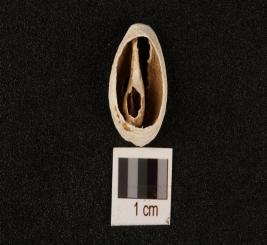 | Description / विवरण | Natural shell cowrie with cutting surface from one side and grooved line on other, white powdery surface. |