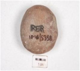 | Description / विवरण | A handmade terracotta disc, slightly chipped off edge and incised lines on surface. |