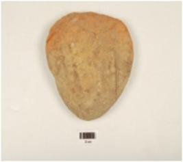 | Description / विवरण | A terracotta triangular shaped cake and coarse fabric. |