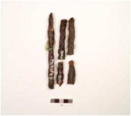 | Description / विवरण | Fragments of an indeterminate object made of iron, broken into give pieces, uneven edges and surface. |