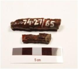 | Description / विवरण | Fragments of an indeterminate iron object, broken into two pieces, uneven edges and surface. |